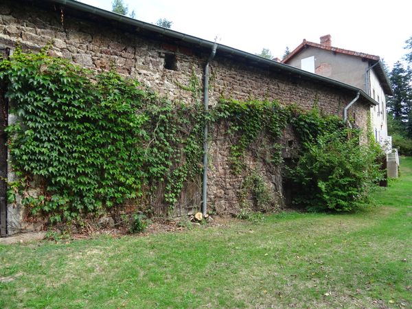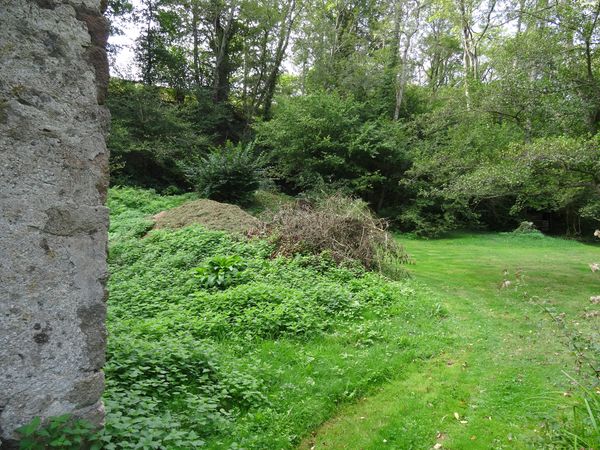 Le sureau le long de la grange a été abattu et stocké le long du mur du passage de roue dans la première salle du moulin. Les branchages seront brûlés à l'automne. |