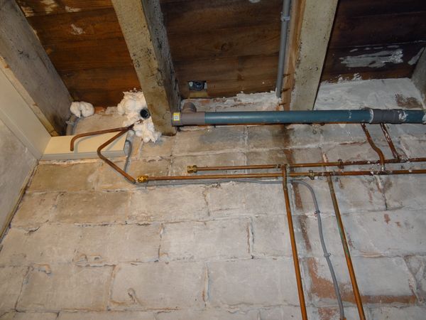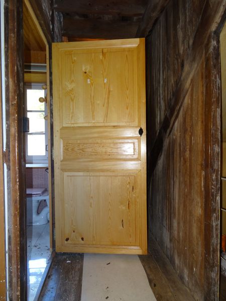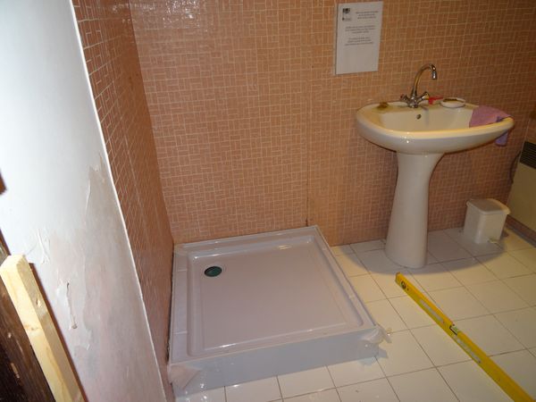 La porte de la salle d'eau de la vieille maison a été inversée. L'interrupteur sera replacé à l'intérieur. L'ancienne cabine de douche et le récepteur ont été démontés non sans quelques dégâts au carrelage des murs. Contrairement aux prévisions le sol sous le bac n'est pas trop dégradé et peut supporter la nouvelle cabine de douche. Le carrelage a été réparé et les murs ont été grattés et rebouchés en prévision d'une remise en peinture. Le nouveau bac a été réglé mais la suite du montage nécessite deux personnes. Elle sera entreprise plus tard. Les réseaux d'alimentation et d'évacuation ont été modifiés mais il ne faut pas remettre en eau la vieille maison pour l'instant car ils n'ont pas été testés. |