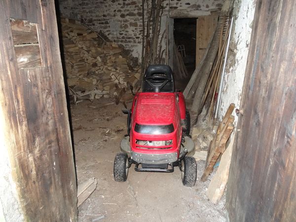 | Tombée en panne sur la rive droite, la tondeuse autoportée a été rangée dans le moulin. Il s'agit probablement d'un problème de bougie mais la panne est survenue samedi soir à 19 h. |