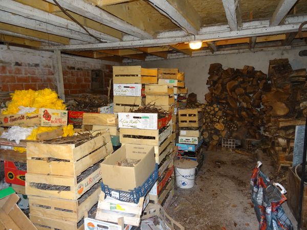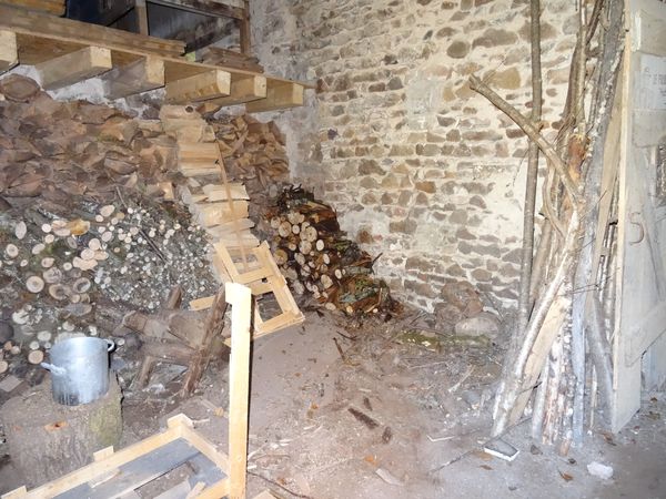 | Un peuplier a perdu la tête près des barres. Elle a été débitée et rangée dans la première salle du moulin. Le bois à utiliser en priorité est le long du mur Nord de la seconde salle du moulin. Le stock de bois d'allumage a été reconstitué.