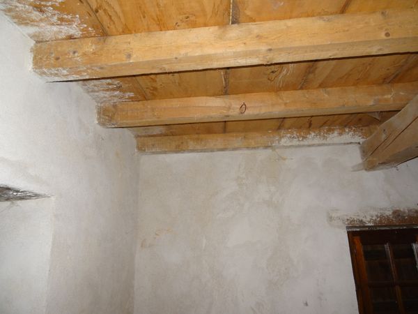 | Une tentative de décapage des poutres du fournil a été stoppée faute de matériel adéquat.