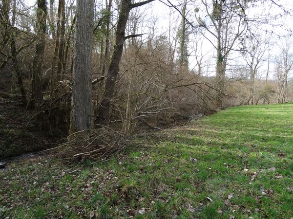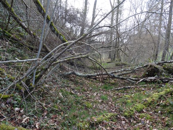 | Encore un beau chablis à la suite des tempêtes de l'hiver. Le passage dans le béal et la bordure de la première prairie ont été dégagés mais l'évacuation des gros rondins attendra la mise en service de la brouette électrique. Les troncs en travers de la rivière attendront la baisse du niveau de l'eau. Noël Membré ne fera pas la coupe cette hiver. Opération reportée d'un an.