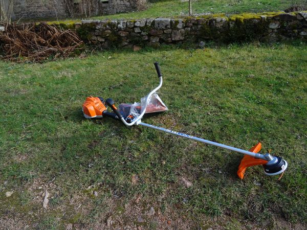 Mon cadeau de Noël, à savoir une débroussailleuse 2 T est arrivée sur place mais n'a pas encore été mise en service. |