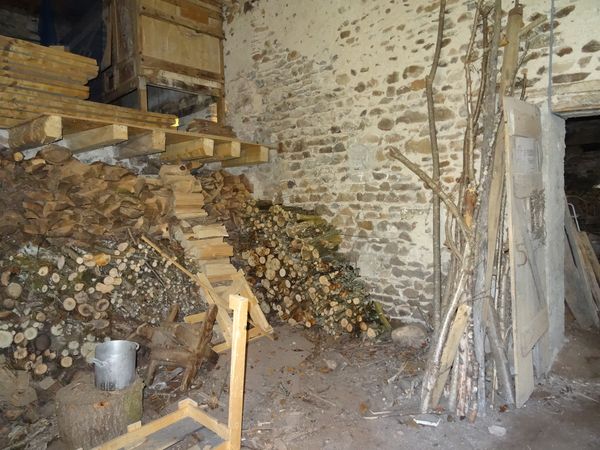 | Le bois a été stocké le long du mur Ouest de la première salle du moulin. |