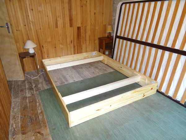 | Le cadre de lit de chambre jaune a reçu du fond dur et 2 couches de vernis. Il a été remonté. Ce lit ne grincera plus.