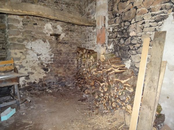 | Un jeune frêne mort tombé en travers du béal a été débité et rentré dans la seconde salle du moulin. Vive la brouette électrique !