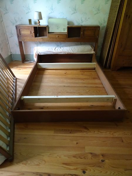 | Le cadre de lit en 140x200 a été modifié pour éviter le fléchissement du sommier. Un bon nombre de matelas inutilisables ont été débarrassés. Un sommier et un matelas en 120x190 sont arrivés.
