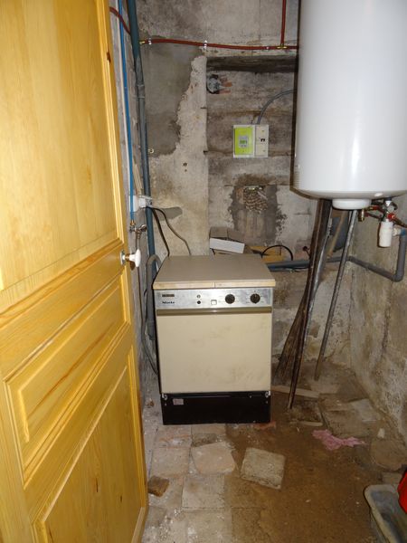 | Le lave-vaisselle arrivé en janvier a été installé provisoirement dans la pièce du chauffe-eau de la vieille maison. Il a fonctionné tous les jours.