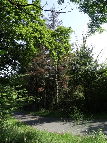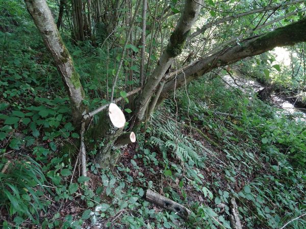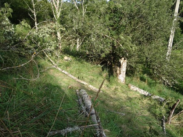 | Plusieurs frênes qui menaçaient la ligne électrique ont été abattus. Ils seront débités et rentrés lorsque les foins seront faits. Les deux premiers sapins le long de la rue du Roc n'ont pas supporté les sècheresses des deux années passées. Ils seront abattus cet hiver ainsi que les deux chênes situés juste derrière.