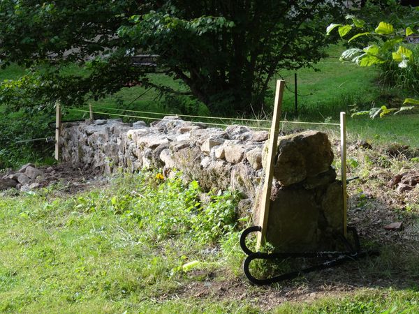 | La réfection du muret du jardin a été continué ainsi que le resserrement du tas de cailloux.