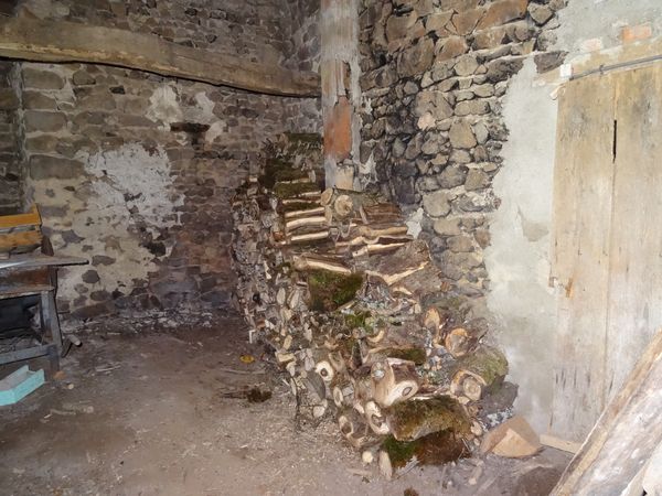 | Le bois est stocké le long du mur Nord de la deuxième salle du moulin. Le bois à utiliser est celui du mur Sud de la première salle du moulin. |