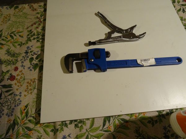 | Une pince-étau et un serre tube ont été acquis. Les batteries de la tondeuse et de la brouette ont été stockées et rechargées.