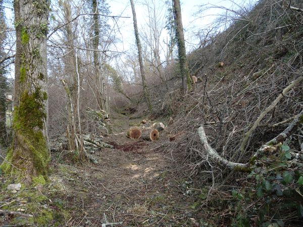 Les Membré père et fils ont continué l'exploitation des arbres du côteau. L'accès est difficile. |