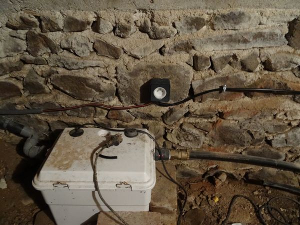 | La prise pour la pompe de relevage accessoire a été posée dans la cave de la vieille maison. La ligne n'est toutefois pas raccordée au tableau électrique pour le moment.