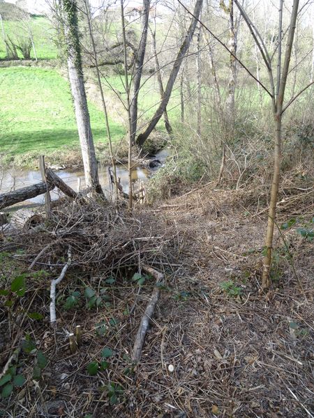 Les broussailles ont été coupées le long de la clôture de la voisine du lavoir. Le béal a été entièrement dégagé. |