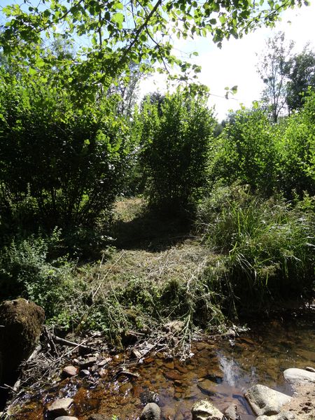 | Le beal, le chemin des barres et celui du gué ont été débroussaillés. Le côteau derrière la grande maison, le talus entre les deux prés et le bord de la rivière ont été nettoyés.