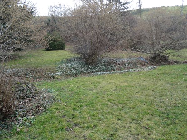 Les rosiers ont été taillés. Les deux kiwis en bas du grand jardin sont dans un état incertain mais n'ont pas disparu. |