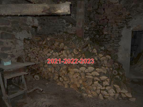 Selon sa provenance le bois a été stocké dans la remise ou la seconde salle du moulin. Le bois à prendre en priorité est dans la mangeoire de la remise pour la rive gauche et le long du mur Ouest de la seconde salle du moulin pour la rive droite.