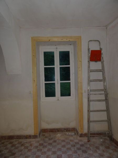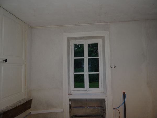 L'électricité a été reconstruite à l'identique dans la grande cuisine de la vieille maison. L'attente à côté de la fenêtre permettra de brancher un éclairage et/ou une prise au-dessus de l'évier.
