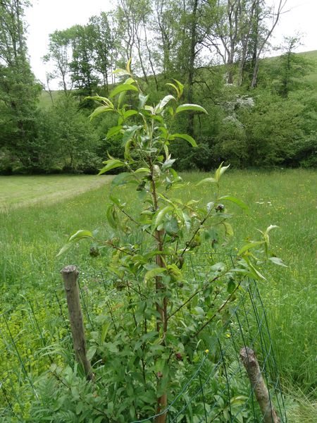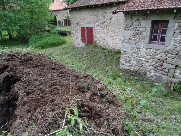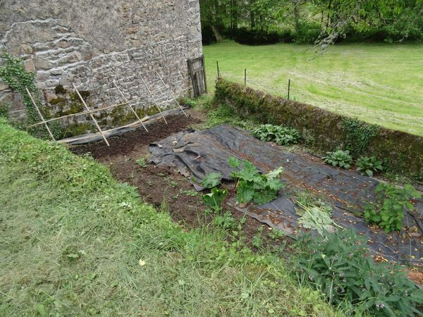 Les pommes de terre et les oignons sont bien sortis de terre. Divers légumes ont été semés dans la planche contre le mur de la grange. L'oseille et la rhubarbe peuvent être utilisées. Le petit pécher à la cloque mais ne portera pas de fruits. Les deux kiwis n'ont pas pris. Les orties et les fougères ont été arrachées le long du mur du jardin.