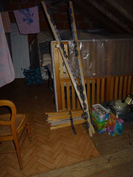 Un sommier à lattes 1 personne en kit et un futon 1 personne ont été apportés d'Echirolles.
