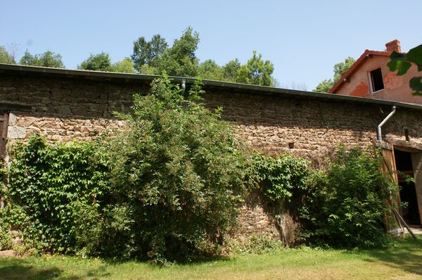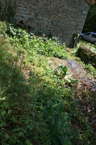 | Un petit frêne mort tombé en travers de la Teyssonne près de la vanne a été débité et rentré. Un autre jeune frêne mort est encore debout au même endroit. Il devra être abattu et débité. Le bois a été stocké sur le long du mur Est de la première remise. |