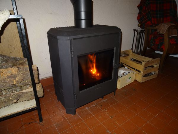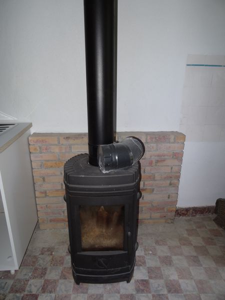 Le nouveau poêle de la grande maison chauffe bien et consomme peu. Le poêle de la grande cuisine de la vieille maison devra être déplacé vers la droite car il est trop prés du nouvel évier. Un coude 45° a été acquis à cet usage.