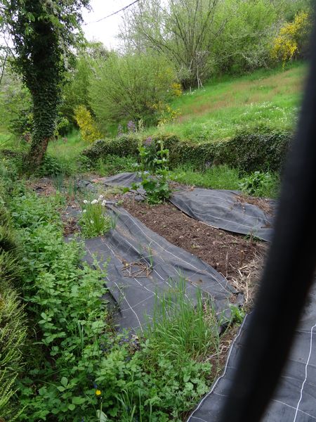 La tonte a été effectuée l'avant dernière semaine d'Avril. La repousse est très rapide. Les tiges fleuries de la rhubarbe ont été coupées. Les pommes de terre sont sorties de terre