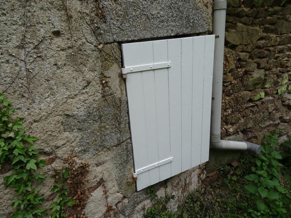 Le volet de la souillarde de la grande maison a été poncé et repeint sur sa face extérieure.
