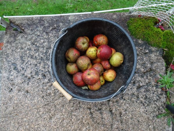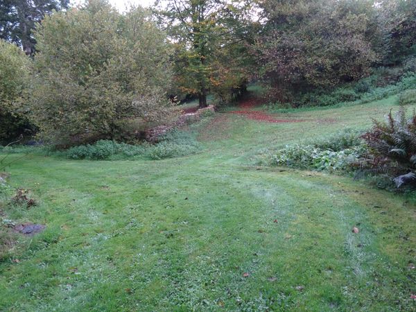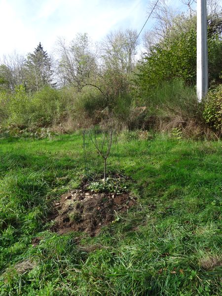 | Le premier pommier du talus a donné de belles pommes. Un prunier Reine Claude d'Oullins a été planté à l'extrémité du talus.