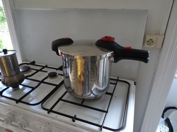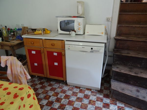 Une nouvelle cocotte en provenance de la Vienne améliore la batterie de cuisine. Merci Delphine et Thomas ! Le lave-vaisselle de la vieille maison qui venait de Cantenay-Epinard a rendu l'âme dans une grosse explosion. Il a été remplacé par celui de la grande maison. L'emplacement de ce dernier a été nettoyé en l'attente d'un remplaçant.