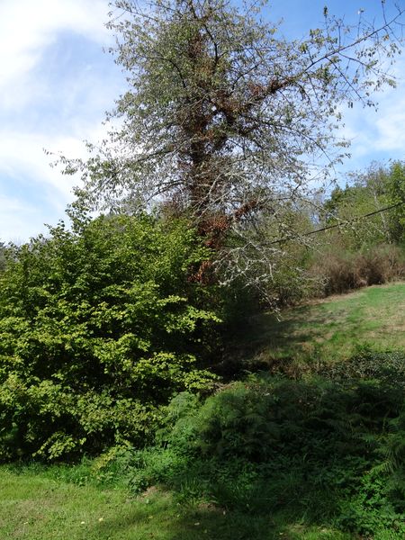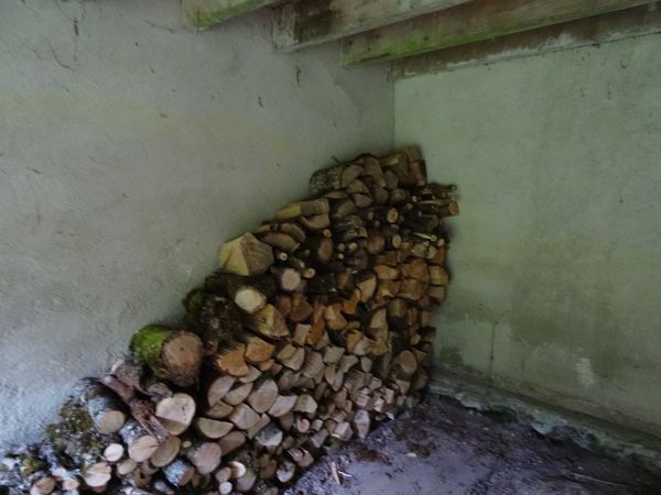 Un très gros frêne totalement mort s'est abattu en travers de la Teyssonne juste en limite Ouest de la propriété et sur la haie séparative. Contact a été pris avec Patrick Duverger pour évacuer le bois tombé chez lui et réparer la clôture. Quelques bûches du frêne abattu cet été ont été fendues et rentrées dans le garage ouvert faute de pouvoir accéder au moulin avec une brouette. |