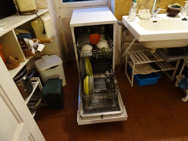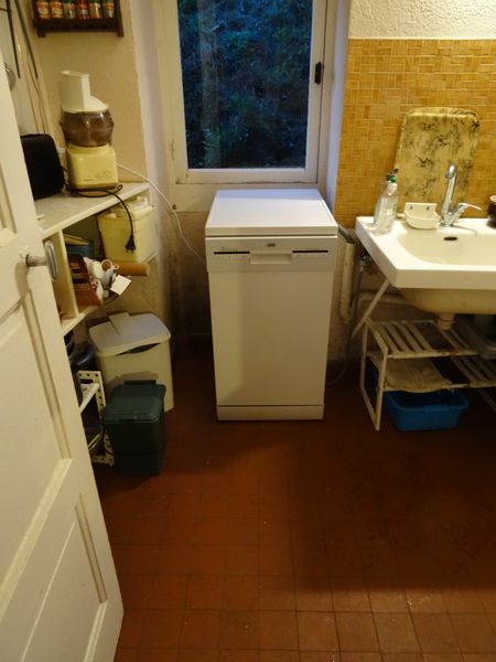 Un lave-vaisselle 45 cm a été acheté et posé dans la souillarde de la grande maison. La notice est disponible dans le tiroir du buffet. Comme sur toutes les machines récentes, les programmes sont très longs. Le plus court dure 90 mn.
