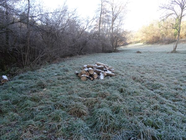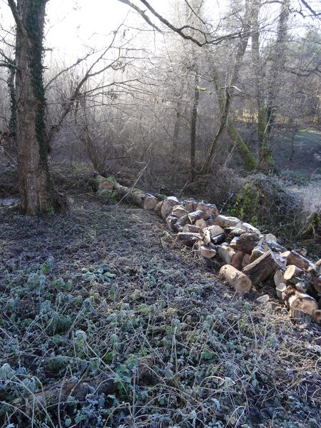 Le frêne tombé en travers de la rivière a été extrait et débité. Celui tombé sur la clôture au bout de la propriété a été débité partiellement mais le reste doit être sorti de la rivière pour ne pas provoquer d'embâcle. Patrick Duverger a rétabli les barbelés.