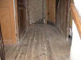 Propositions pour le pallier de la vieille maison : 1 Pour le mur du fond : réaliser une fausse marche au même niveau que la première marche de l'escalier du grenier pour cacher les réseaux électriques eau et ventilation. 2 Réaliser une pallissade en peuplier bouveté comme celle de la grande salle pour cacher les irrégularités du mur du fond et le tuyau en PVC 3 Refaire et poser des lattes de plancher en pin pour remplacer les lattes abîmées et coupées. Laisser en place la partie du plancher qui est en planches bouvetées de peuplier. Crépir la cloison brique de la salle d'eau. 4 Réaliser un nez de marche en bois dur pour la transition escalier/pallier, 5 A la suite d'une seconde chute dans le petit escalier vers la pièce à mi-étage, construire une rembarde démontable. 6 Refaire deux portes identiques à celles de la salle d'eau. Dans la même série je peux refaire les trois portes pleines défectueuses de la grande salle du bas 7 Revoir l'éclairage. |