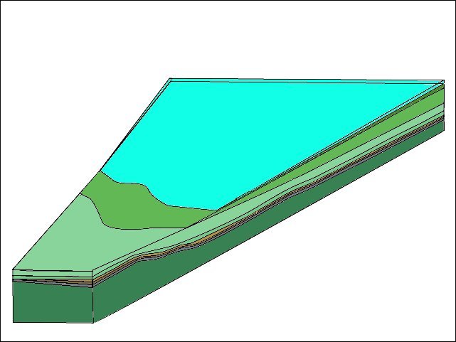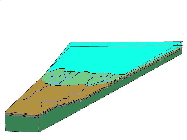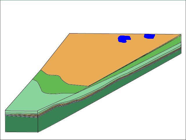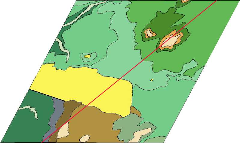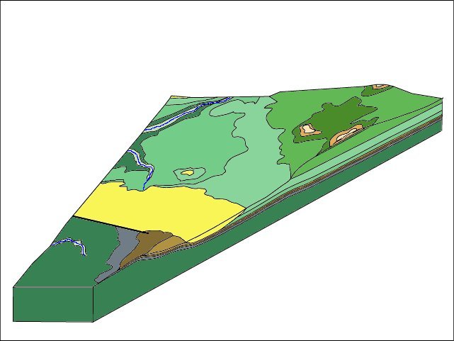 Pour passer de cette carte géologique simplifiée à une vue en perspective à partir d'un point situé au sud ouest, cliquez sur suite. |